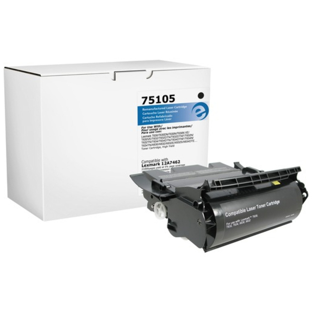 Elite Image 75105 Reman Toner Cartridge Replacement for Lexmark (12A7462) Black