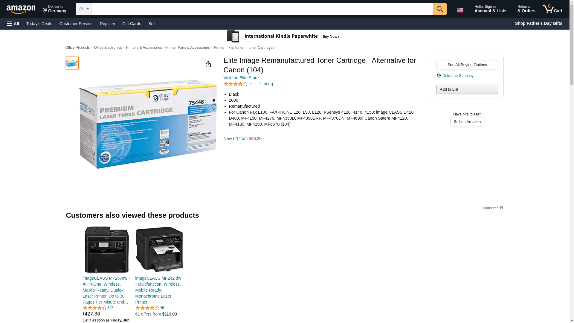 Premium, remanufactured toner cartridge is designed for use with Canon Faxphone L120, L90; imageClass D480, MF4150, MF4270, MF4350d, MF4370dn and MF4690. Cartridge yields approximately 2,000 pages. Elite Image is ISO certified.