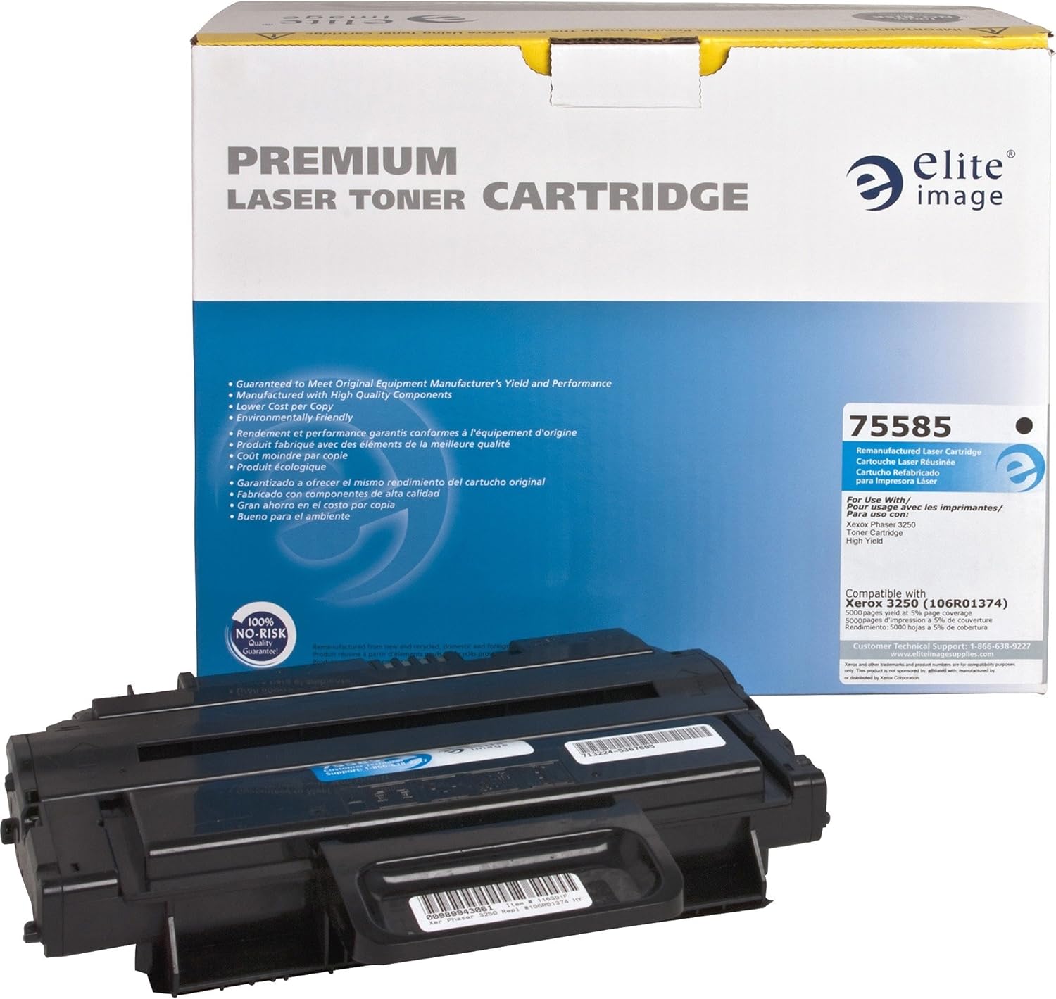Toner cartridge is designed for use with the Xerox Phaser 3250. The remanufactured cartridge yields approximately 5,000 pages. Elite Image is ISO certified.