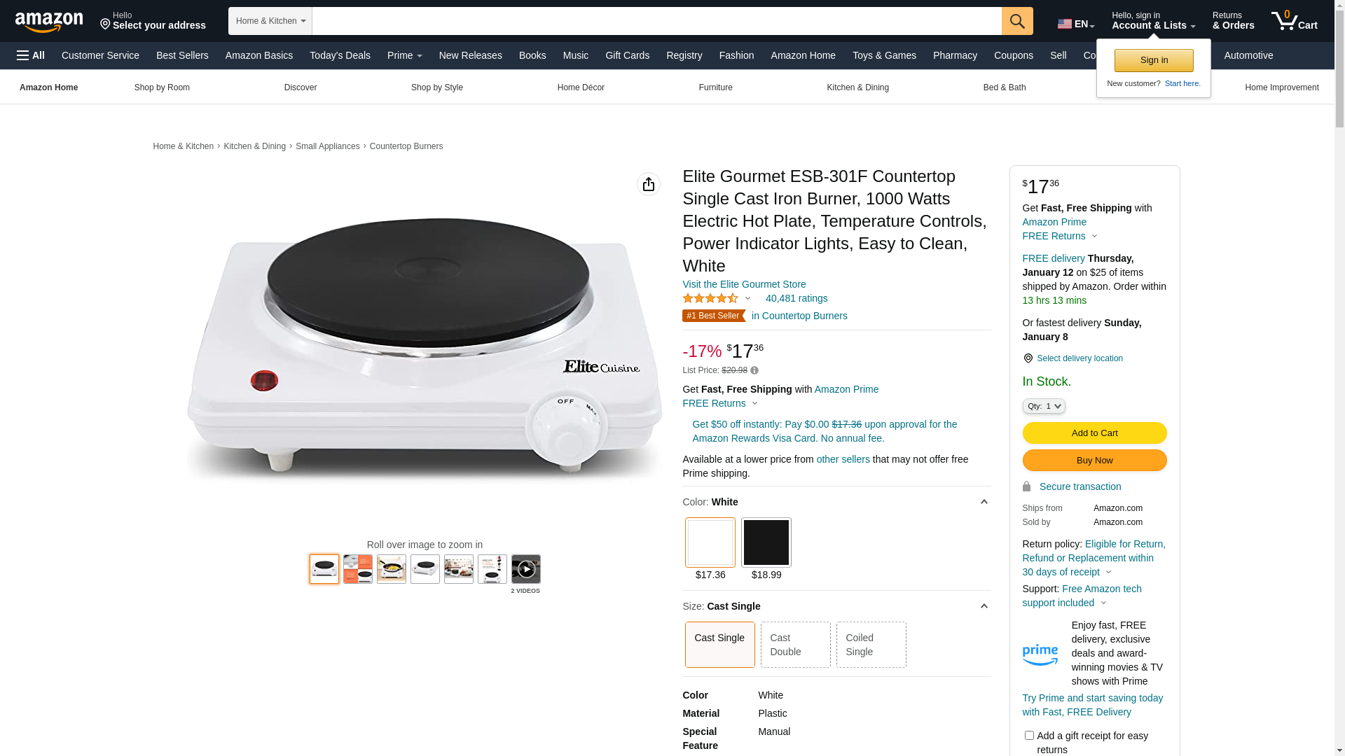 Best Buy: Elite Cuisine Buffet 8.75" Electric Cooktop White ESB-301F