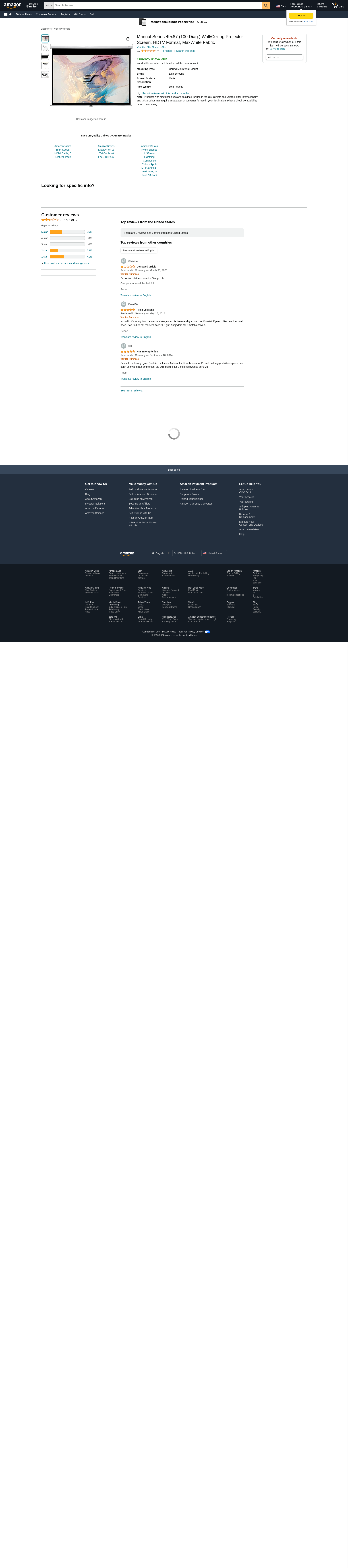 | Feature | ELITE SCREENS M100XWH MANUAL PULL-DOWN SCREEN (100 49 X 87 16:9 HDTV ... |