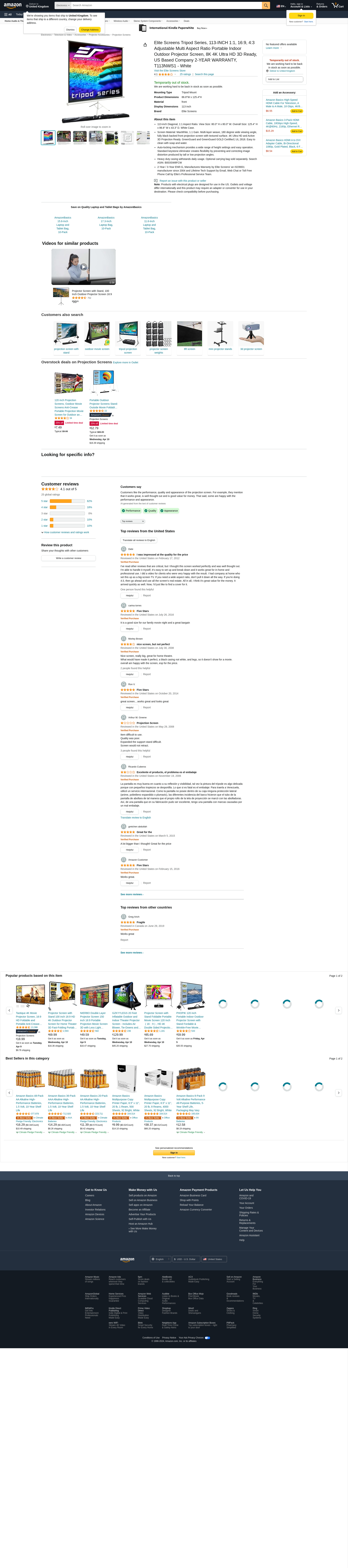 Elite Tripod Projector Screen, MaxWhite 80"x 80" (113" diagonal) 1:1, white casing