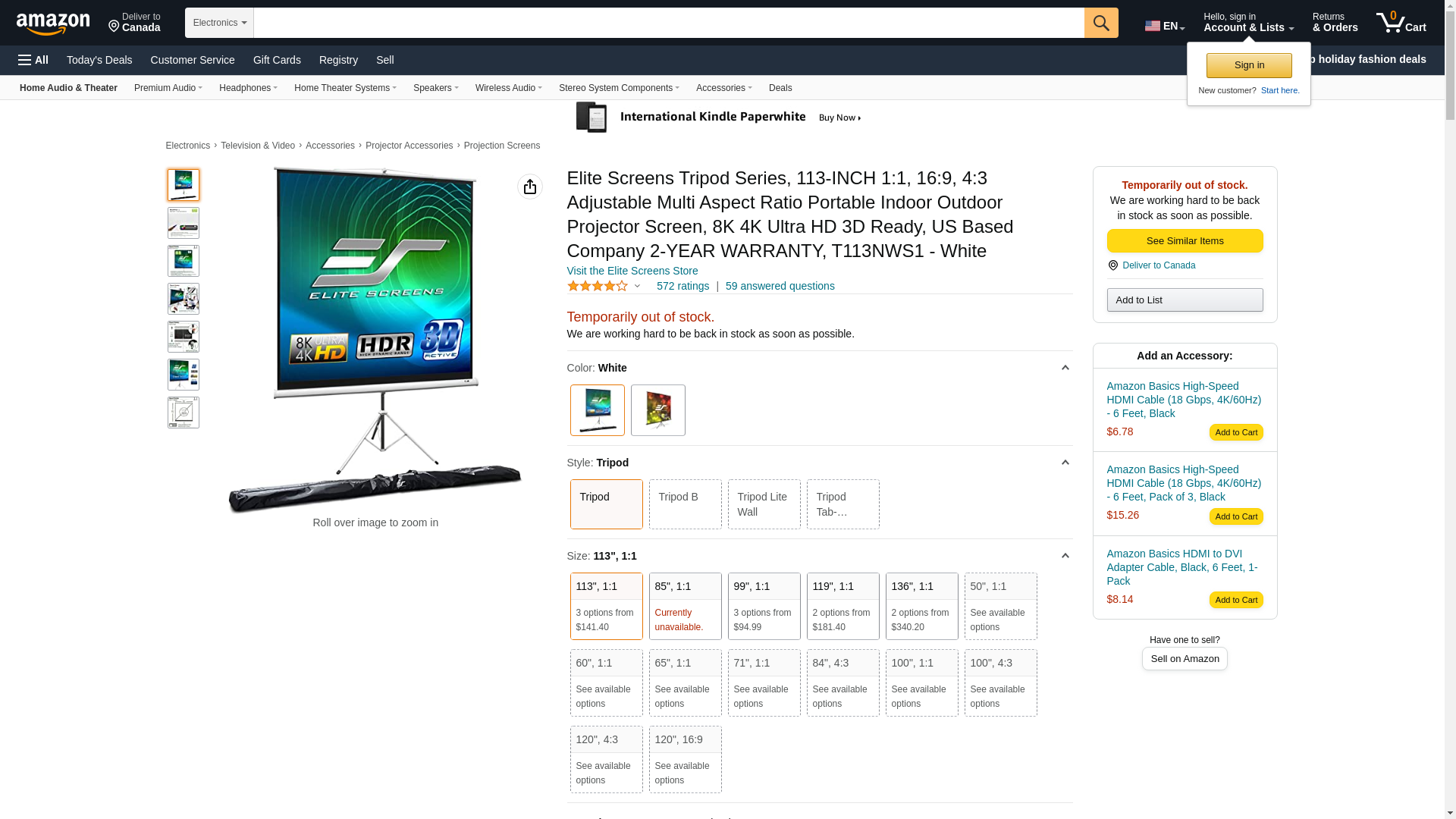 Elite Screens Tripod Series Portable Projection Screen - 83" x 83" - Matte White - 113" Diagonal - Elite Screens Tripod Series Portable Projection Screen - Elite Screens Tripod Series Portable Projection Screen - 83" x 83" - Matte White - 113" Diagonal - 113 (4:3)Tripod Portable - Item-Type: - Projection Screen. . Item-Part-No#: T113NWS1. Manufacturer Warranty: 2 Year - New - Elite Screens Tripod Series Portable Projection Screen - 83" x 83" - Matte White - 113" Diagonal