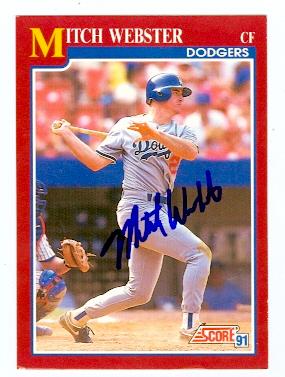 Mitch Webster autographed baseball card (Los Angeles Dodgers) 1991 Score No.68T