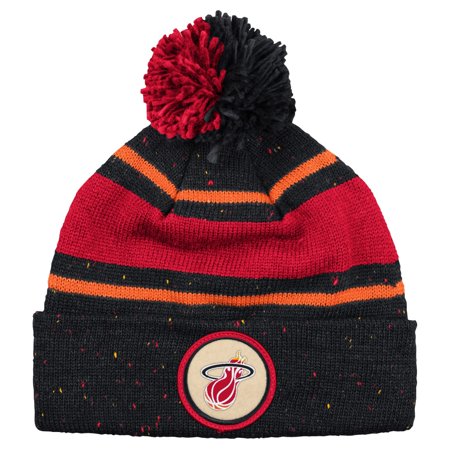 Protect your head and ears in the cold, blustery weather by wearing this stylish retro cuffed knit cap from Mitchell and Ness. It's made of 100% acrylic speckled yarn knit and features felt patch embroidered team logo on cuff, solid team color stripes on crown, multi color pom and Mitchell & Ness back embroidery. Officially licensed by the NBA.