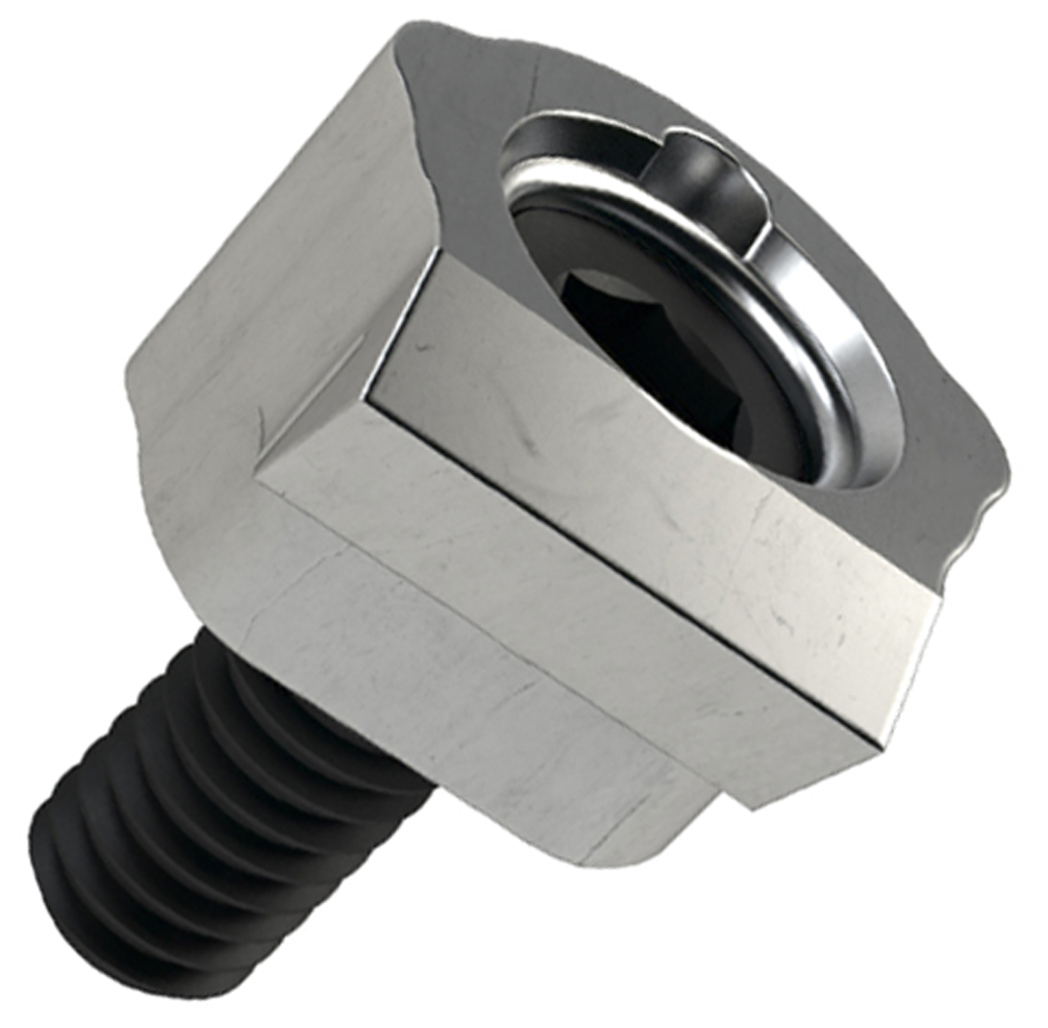Mitee-Bite? Dyna-Force? Replacement Clamp Insert For 20mm Dyna-Force? Clamp, With Serrated Clamping Jaw. The majority of the Dyna-Force? clamp is below the surface of the fixture which provides excellent clamp support and makes for a very low profile. The clamp jaw slides on an angle for positive downforce. Incredible clamping and hold down power. Low profile, compact design. 17-4 PH stainless steel. The clamp jaw is available with smooth or serrated jaws. Clamp comes assembled with alloy steel screw. The support surface of the Dyna-Force? clamp can be installed flush with the fixture plate or raised to hold the workpiece off the fixture, enabling drill-through. Mitee-Bite? Part #28482