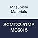 Mitsubishi Materials SCMT32.51MP MC6015 Coated Carbide SC Type Positive Turning Insert with Hole, Square, 0.375" IC, 0.156" Thick, 0.016" Corner Radius, MP Breaker (Pack of 10)