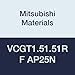 Mitsubishi Materials VCGT1.51.51RF AP25N Coated Cermet VC Type Positive Turning Insert with Hole, Rhombic 35°, Grade AP25N, 0.187" IC, 0.094" Thick, 0.016" Corner Radius, RF Breaker (Pack of 10)