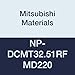 Mitsubishi Materials NP-DCMT32.51RF MD220 PCD DC Type Petit Tip Positive Turning Insert with Hole, T Chip Breaker Symbol, Rhombic 55°, 0.375" IC, 0.156" Thick, 0.016" Corner Radius, RF Breaker