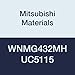 Mitsubishi Materials WNMG432MH UC5115 Coated Carbide WN Type Negative Turning Insert with Hole, MH Breaker, Trigon, Grade UC5115, 0.5" IC, 0.187" Thick, 0.031" Corner Radius (Pack of 10)