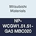 Mitsubishi Materials NP-WCGW1.51.51-GA3 MBC020 Coated CBN WC Type Petit Tip Positive Turning Insert with Hole, Trigon, GA Honing, No Wiper, 3 Tip, 0.016" Corner Radius, 0.187" IC, 0.094" Thick