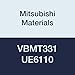 Mitsubishi Materials VBMT331 UE6110 VBMT Carbide VB Type Positive Turning Insert with Hole, CVD Coated, Rhombic 35°, 0.375" IC, 0.187" Thick, 0.016" Corner Radius, Standard Breaker (Pack of 10)