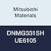 Mitsubishi Materials DNMG331SH UE6105 CVD Coated Carbide DN Type Negative Turning Insert with Hole, Rhombic 55°, 0.375" IC, 0.187" Thick, 0.016" Corner Radius, SH Breaker (Pack of 10)