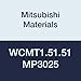 Mitsubishi Materials WCMT1.51.51 MP3025 Coated Cermet WC Type Turning Insert with Hole, Trigon, Grade MP3025, 0.016" Corner Radius, 0.187" IC, Standard Breaker, 0.094" Thick (Pack of 10)