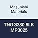 Mitsubishi Materials TNGG330.5LK MP3025 Coated Cermet TN Type Negative Turning Insert with Hole, Triangular, 0.375" IC, 0.187" Thick, 0.008" Corner Radius, LK Breaker (Pack of 10)