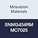 Mitsubishi Materials SNMG434RM MC7025 Coated Carbide SN Type Negative Turning Insert with Hole, RM Breaker, Square, Grade MC7025, 0.5" IC, 0.187" Thick, 0.063" Corner Radius (Pack of 10)
