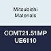 Mitsubishi Materials CCMT21.51MP UE6110 CVD Coated Carbide CC Type Positive Turning Insert with Hole, Rhombic 80°, 0.25" IC, 0.094" Thick, 0.016" Corner Radius, MP Breaker (Pack of 10)