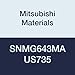 Mitsubishi Materials SNMG643MA US735 Carbide SN Type Negative Turning Insert with Hole, Unstable Cutting, Coated, Square, 0.75" IC, 0.25" Thick, 0.047" Corner Radius, MA Breaker (Pack of 10)