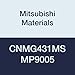 Mitsubishi Materials CNMG431MS MP9005 Carbide CN Type Negative Turning Insert with Hole, Coated, Rhombic 80°, Grade MP9005, 0.5" IC, 0.187" Thick, 0.016" Corner Radius, MS Breaker (Pack of 10)