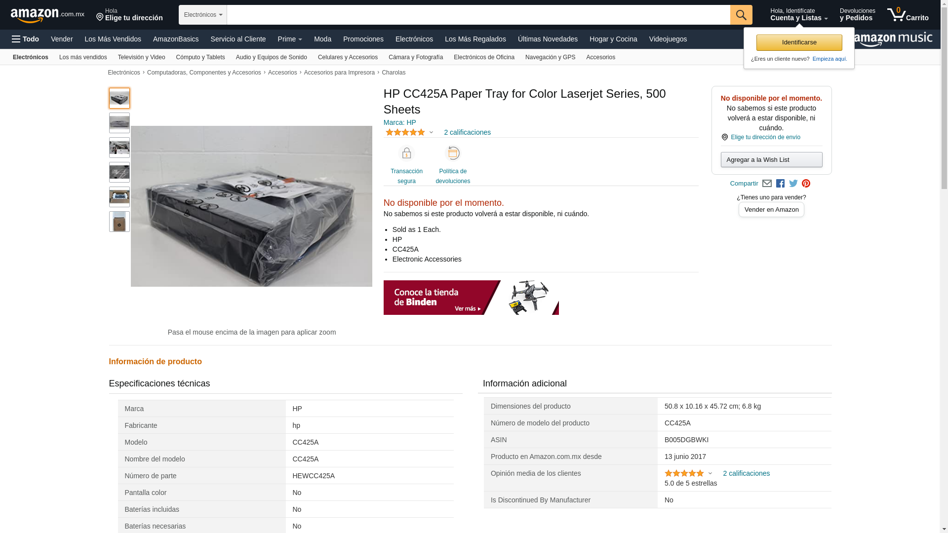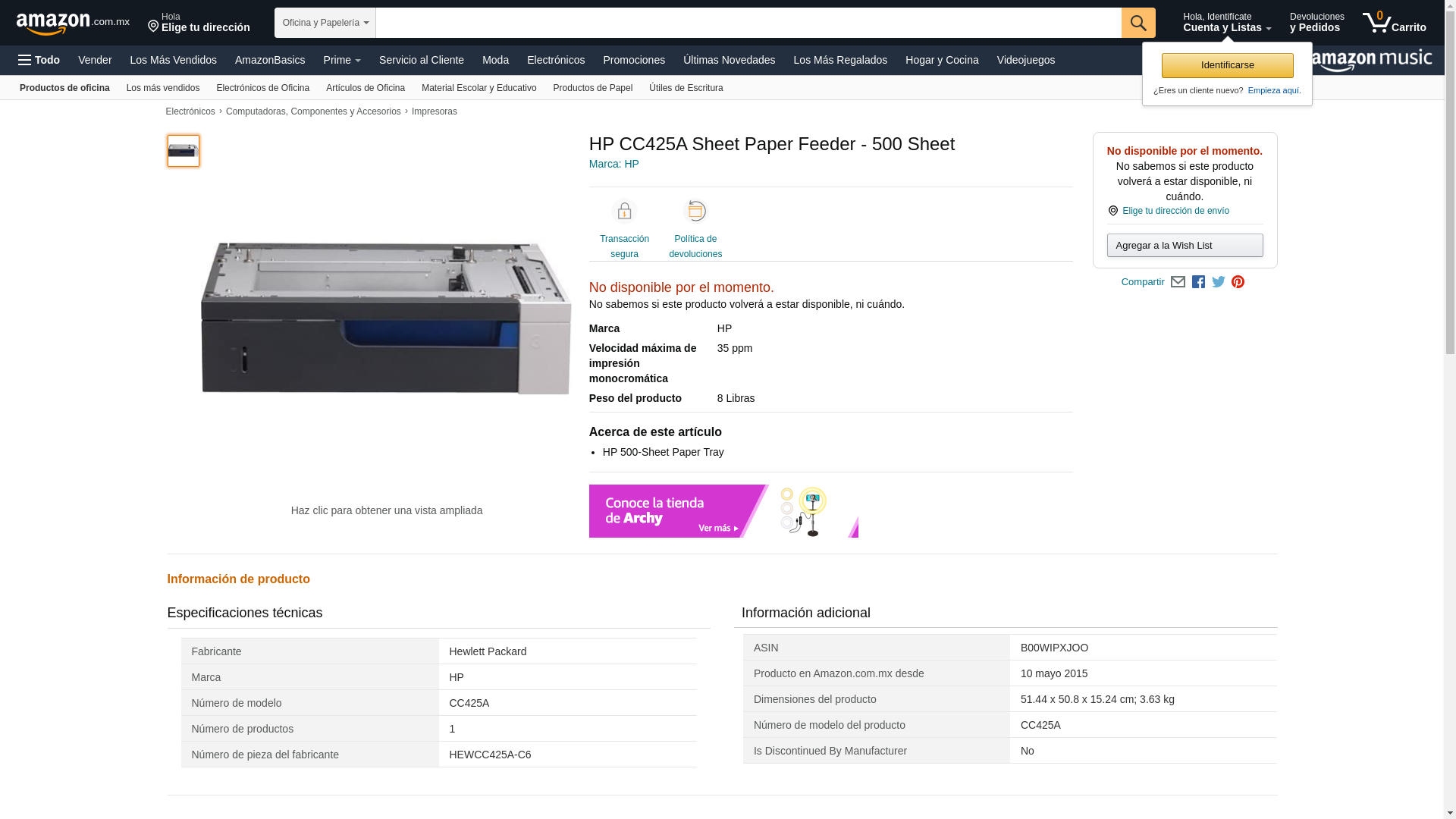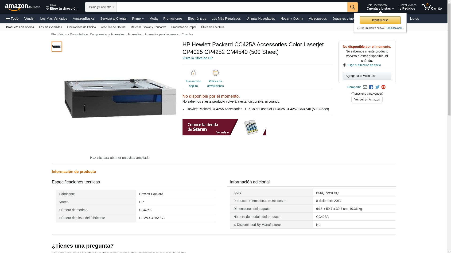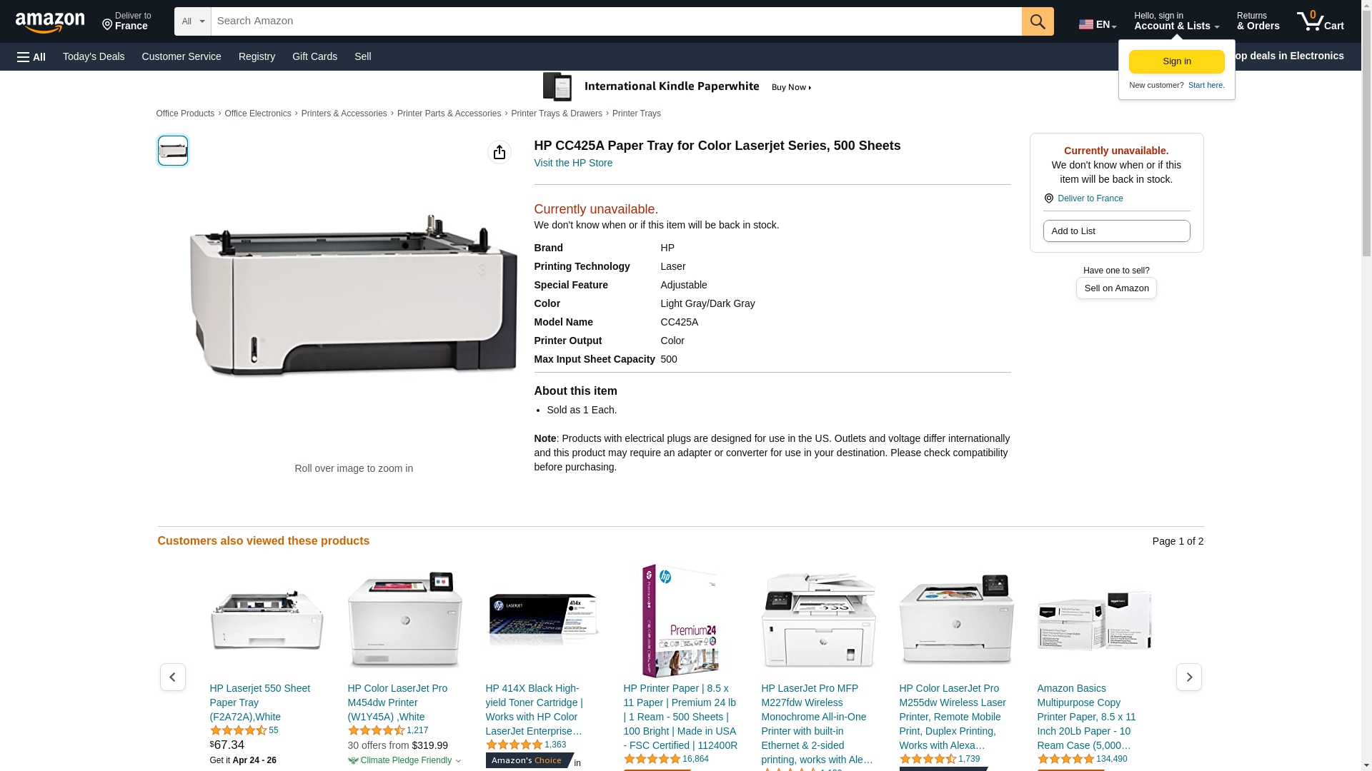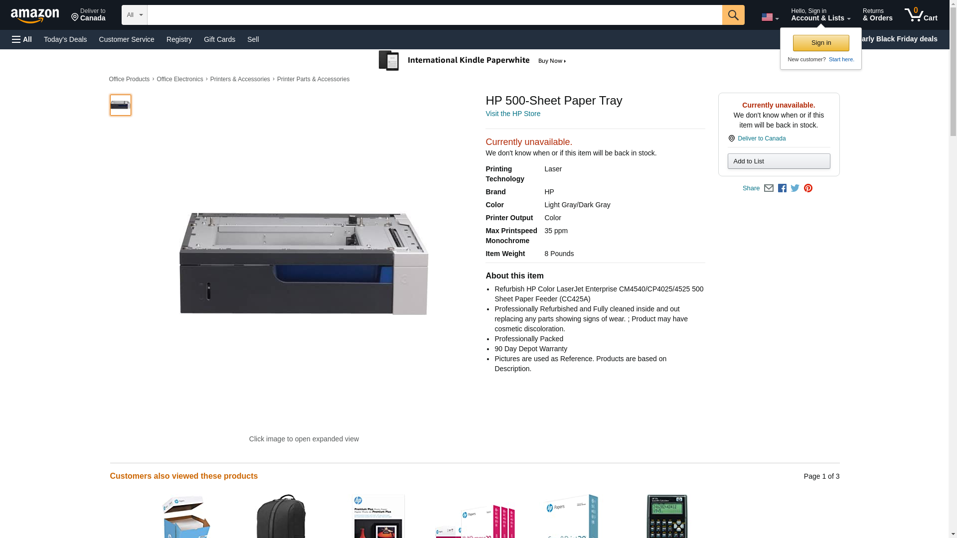| Feature | Hewlett Packard CC425A Accessories - HP Color LaserJet CP4025 CP4252 CM4540 (500 Sheet) |