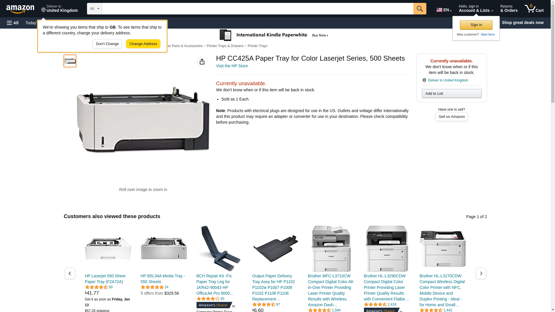 HP CC425A Paper Tray for Color Laserjet Series, 500 Sheets