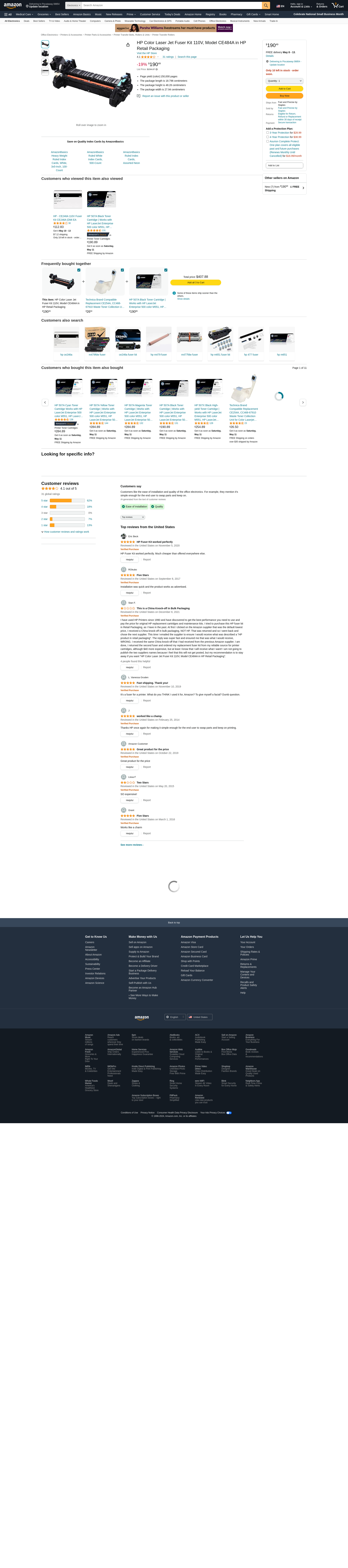 HP Color Laser Jet Fuser Kit 110V, Model CE484A in HP Retail Packaging