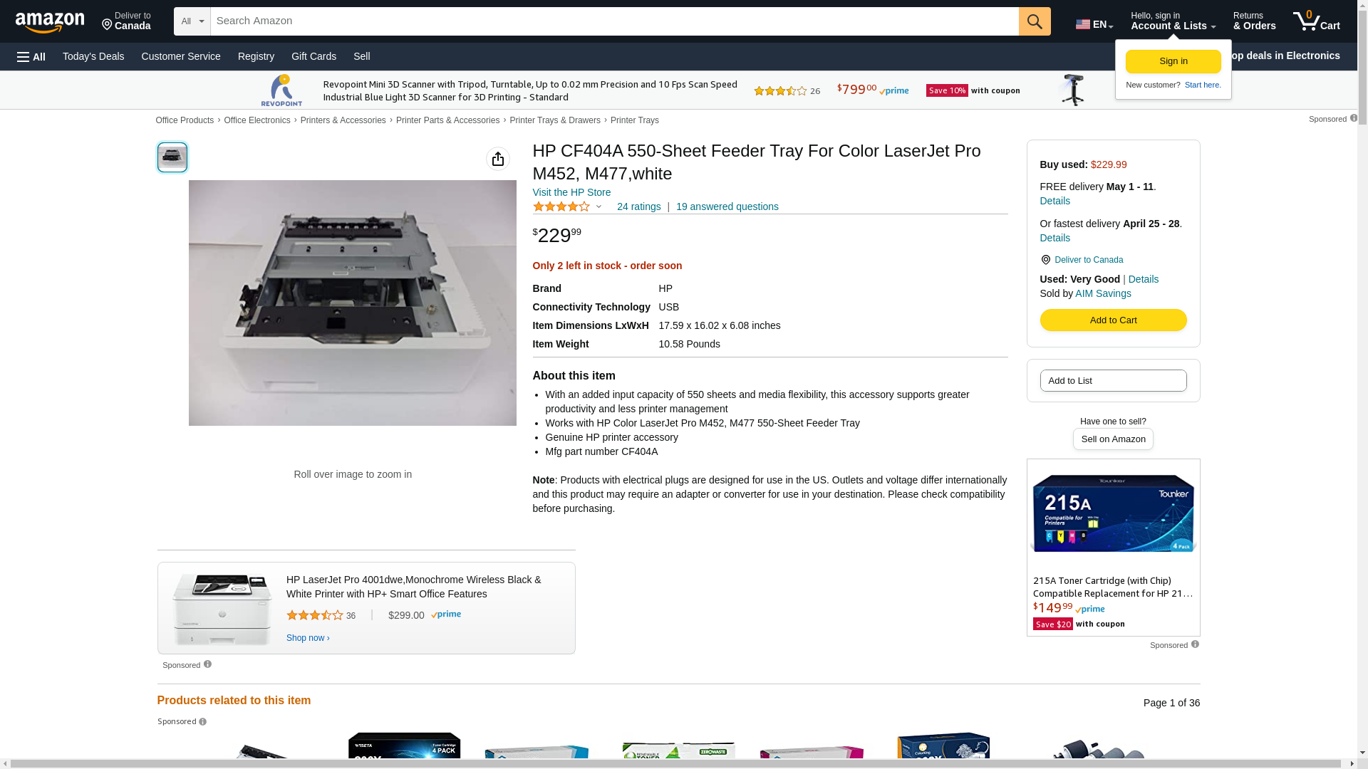HP CF404A 550-Sheet Feeder Tray For Color LaserJet Pro M452, M477,white
