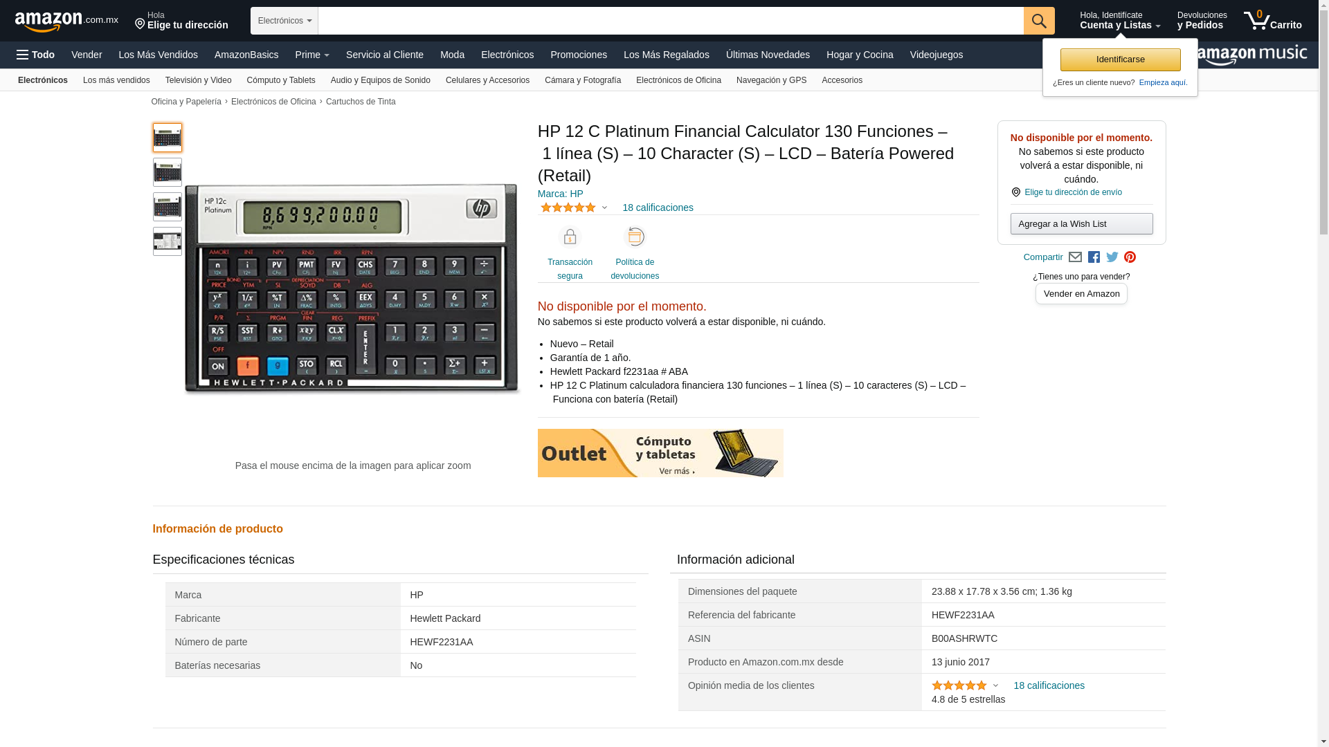 | Feature | HP 12c Platinum Financial Calculator 130 Functions - 1 Line(s) - 10 Character(s) - LCD - Battery Powered (Retail) |