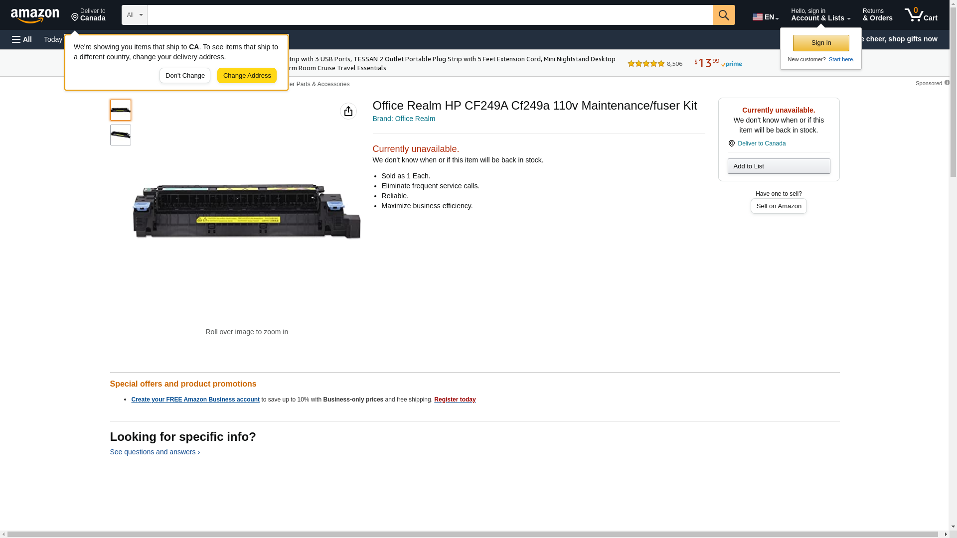 Office Realm HP CF249A Cf249a 110v Maintenance/fuser Kit
