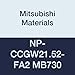 Mitsubishi Materials NP-CCGW21.52-FA2 MB730 CBN CC Type Petit Tip Positive Turning Insert with Hole, General Cutting Rhombic 80°, Grade MB730, FA Honing/No Wiper, 2 Tip, 0.031" Corner Radius