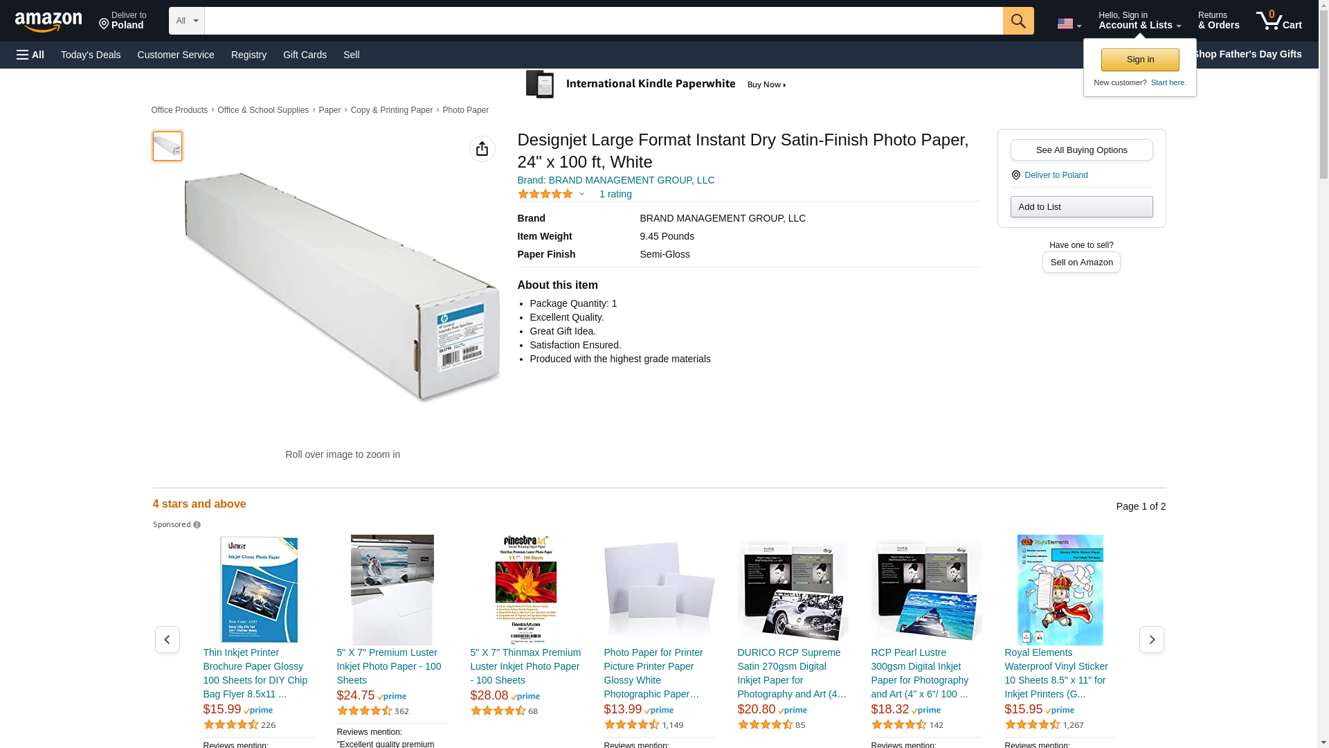 24 in. x 100 ft. HP Universal Instant-Dry Semi-gloss Photo Paper 200gsm/7.4 mil (1 Roll)