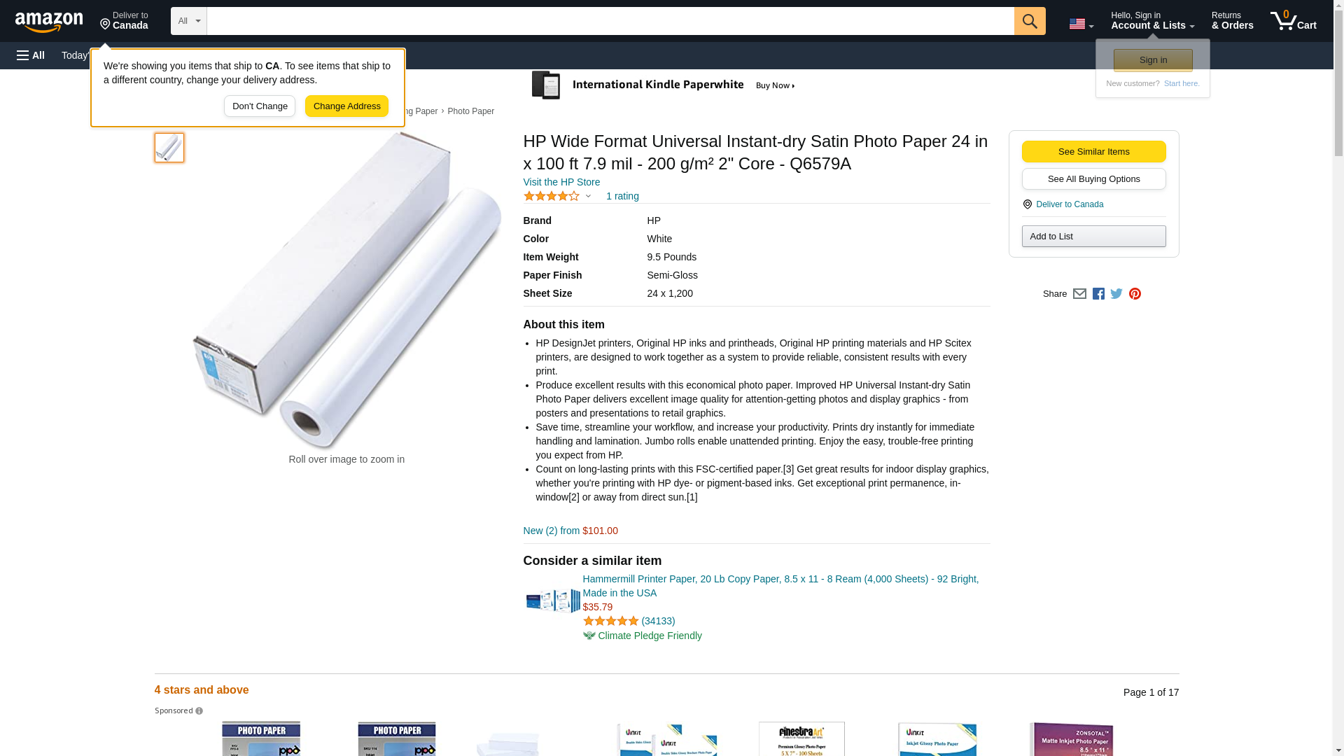 HP Papers Wide Format Universal Instant-dry Satin Photo Paper 24 in x 100 ft 7.9 mil - 200 g/m² 2" Core - Q6579A