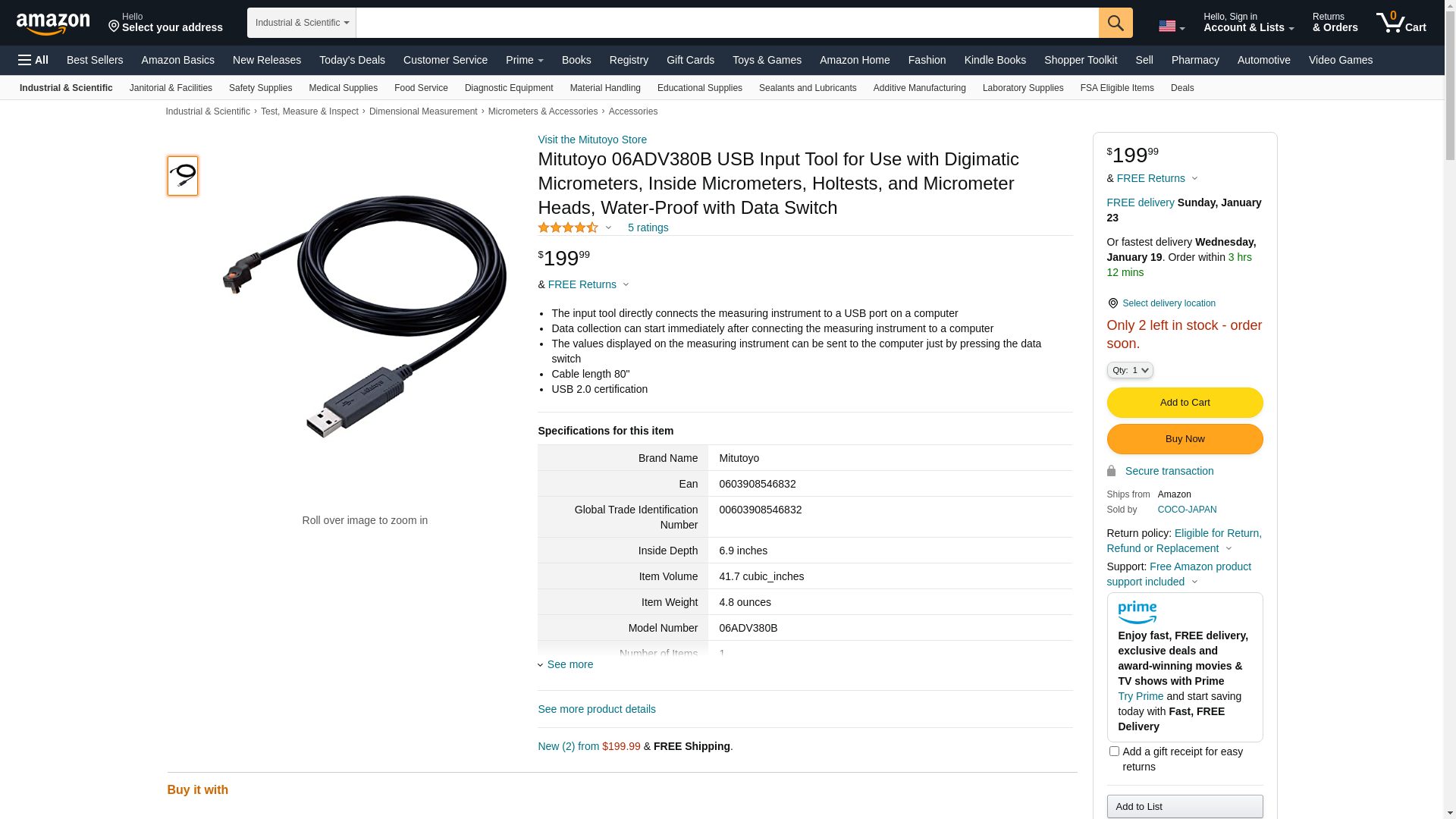 Mitutoyo Usb Input Tool Direct Rohs Compliant: Na - 06ADV380B