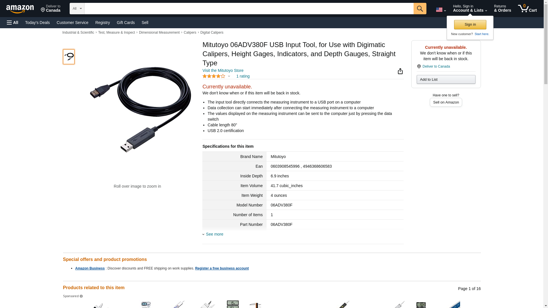 Mitutoyo 06ADV380F USB Input Tool, for Use with Digimatic Calipers, Height Gages, Indicators, and Depth Gauges, Straight Type
