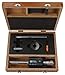 - Set includes two interchangeable measuring heads, setting ring, extension rod, and fitted wooden case