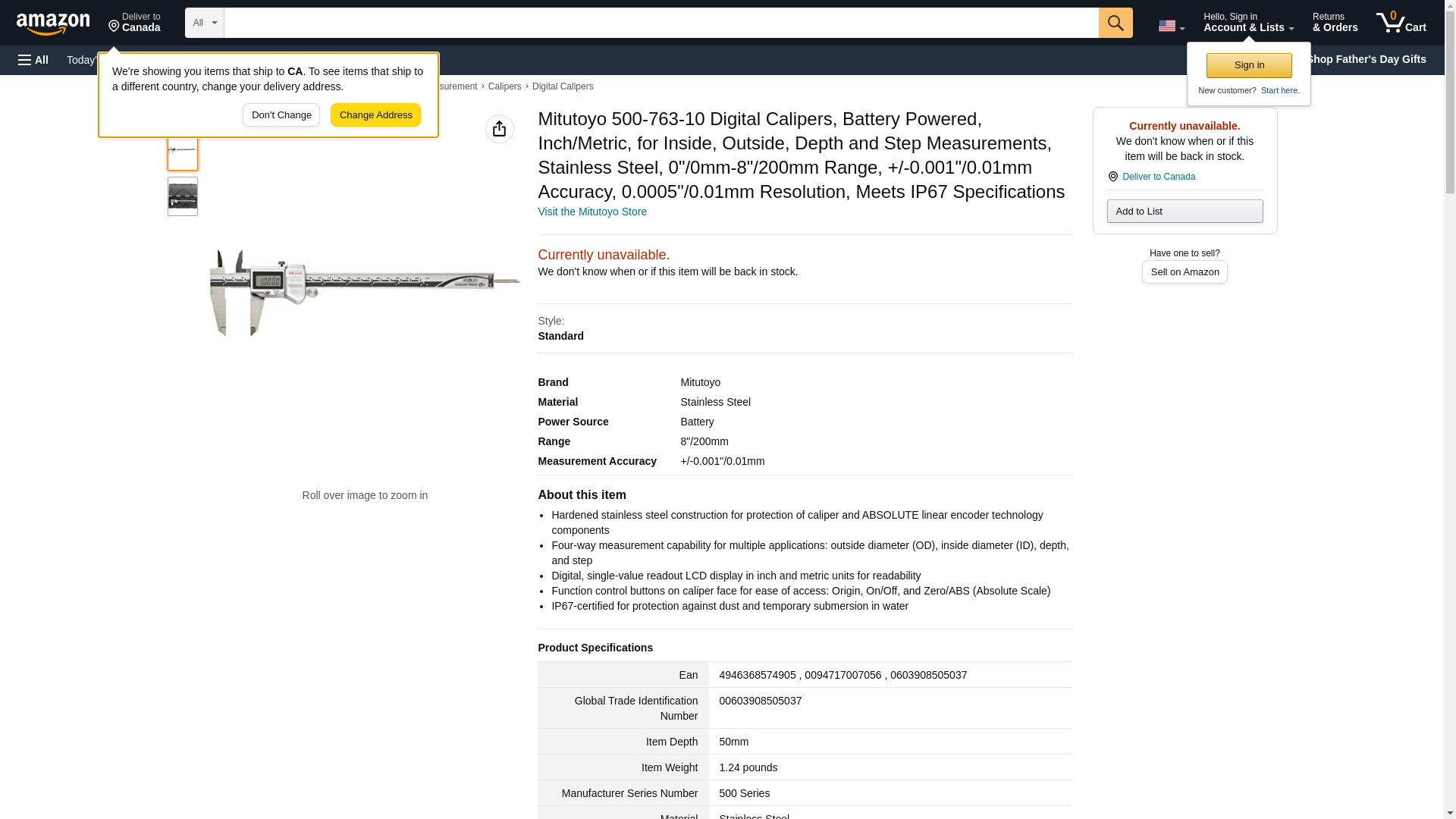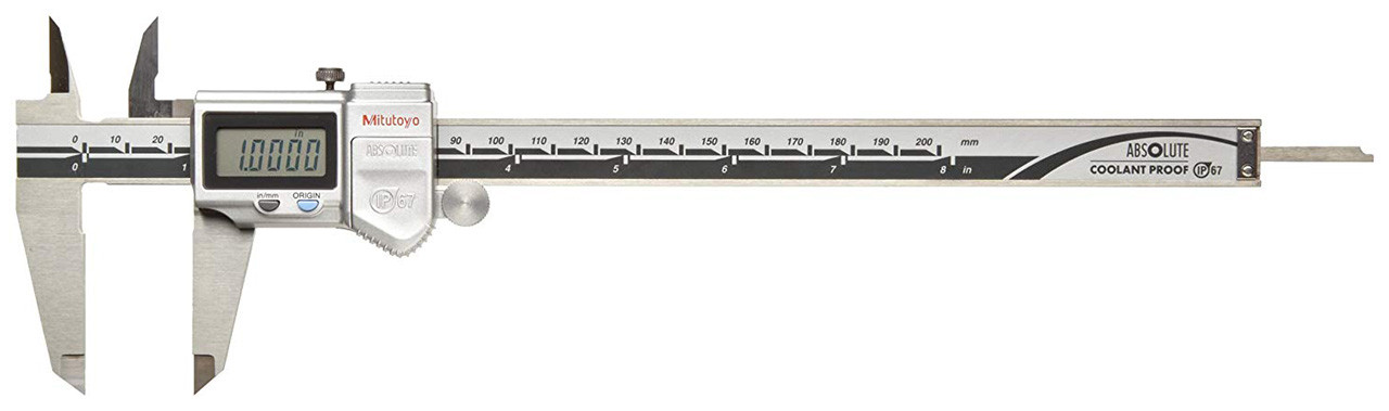 Mitutoyo 500-763-10 Digital Calipers, Battery Powered, Inch/Metric, for Inside, Outside, Depth and Step Measurements, Stainless Steel, 0"/0mm-8"/200mm Range, +/-0.001"/0.01mm Accuracy, 0.0005"/0.01mm Resolution, Meets IP67 Specifications