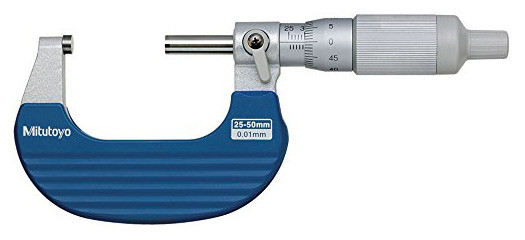 Mitutoyo 102-702 Ratchet Thimble Micrometer, Outside Micrometer, Ratchet Thimble, 25-50mm Range, 0.01mm Graduation, +/-0.002mm Accuracy