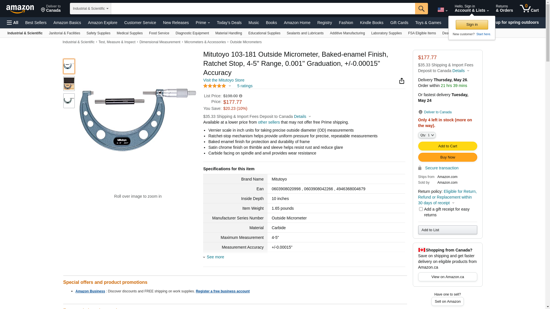 | Guardian | MITUTOYO103-181 | 1 | -2 | 1 | 1 @ $213.00 |