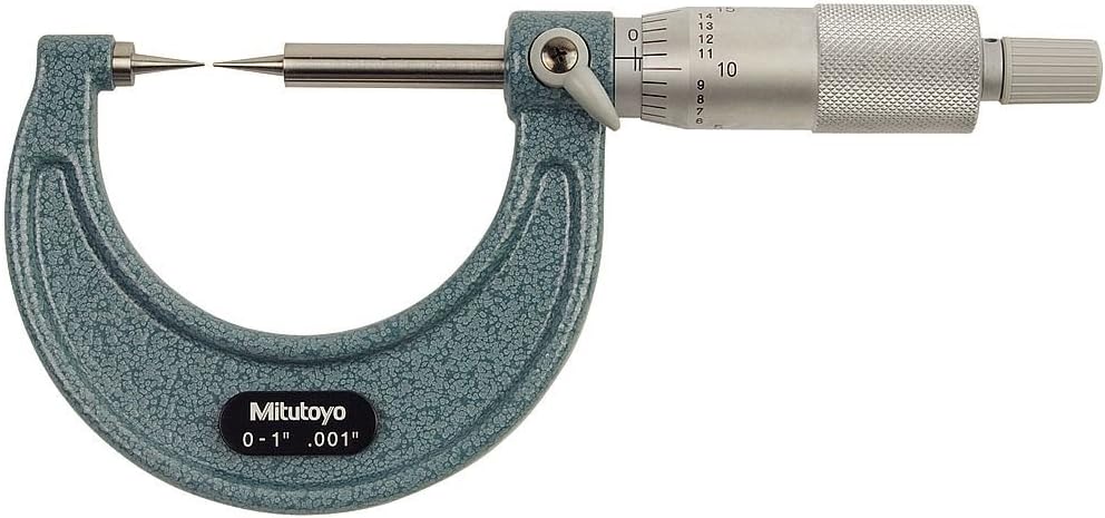 Mitutoyo 112-177, 0 - 1" X .001" Point Micrometer, Ratchet, 15 Deg. Steel Points