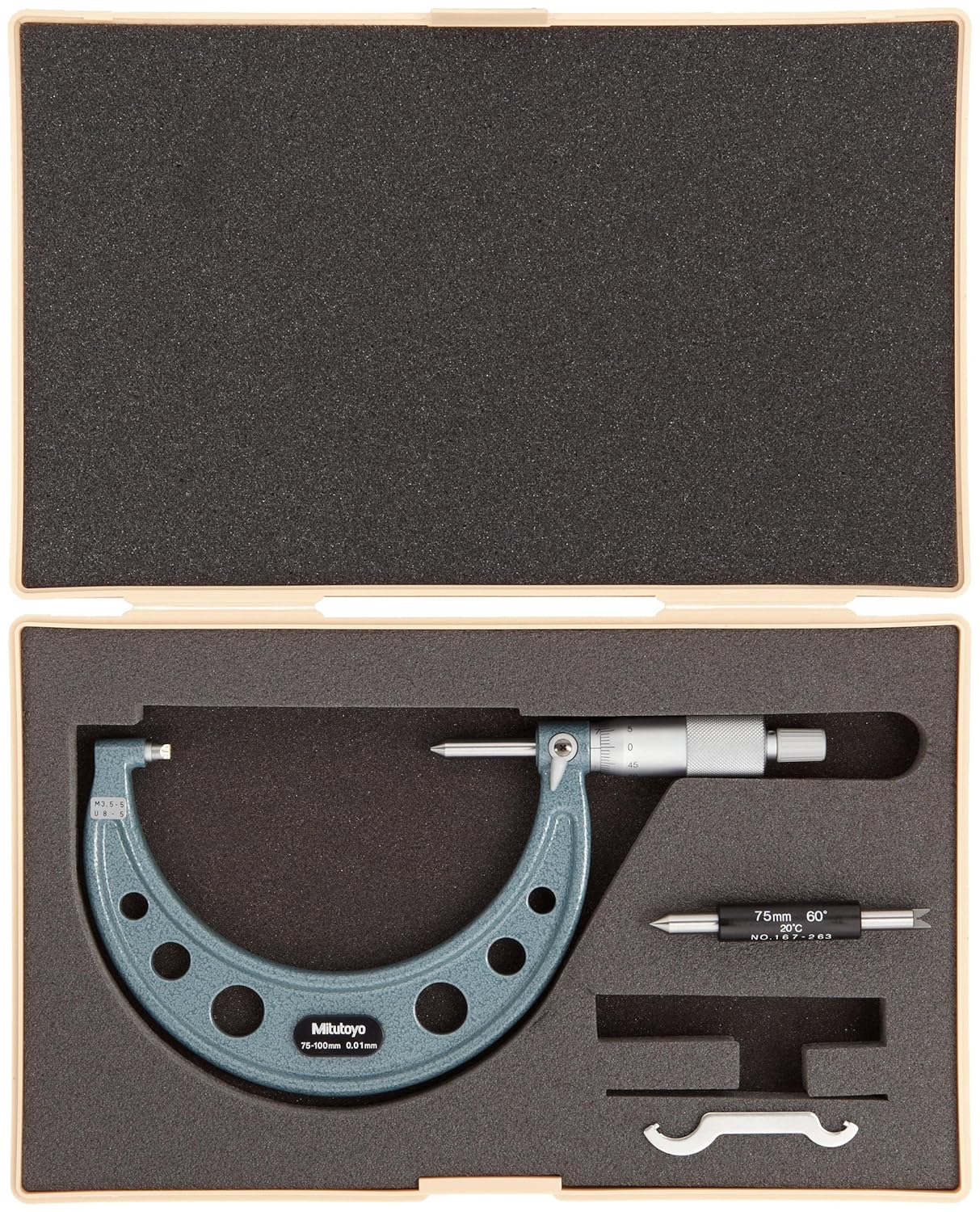 Mitutoyo 125-104 Screw Thread Micrometer, Ratchet Stop, 0-25mm Range, 0.01mm Graduation, +/-0.0023mm Accuracy, 2-3mm/13-9TPI Size
