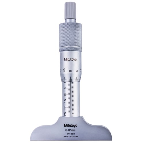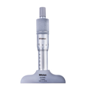 Mitutoyo 128-101 Vernier Depth Gauge, Micrometer Type, 0-25mm Range, 0.01mm Graduation, +/-0.003mm Accuracy, 63.6mm x 16mm Base