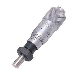 Mitutoyo 148-207 Miniature Micrometer Head, 0-6.5mm Range, 0.01mm Graduation, +/-0.005mm Accuracy, Plain Thimble, Clamp Nut, Spherical SR3 Face