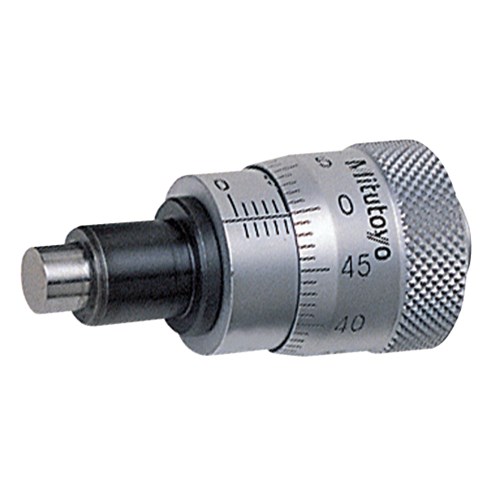 Mitutoyo 148-303 Large Micrometer Head, 0-6.5mm Range, 0.01mm Graduation, +/-0.002mm Accuracy, Plain Thimble, Flat Face, 20mm Thimble Dia.