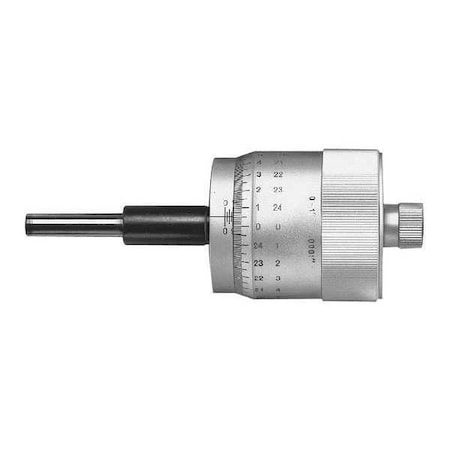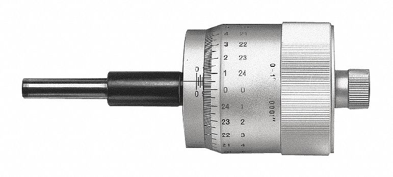 Mitutoyo 152-372 Micrometer Head, Large Thimble, Carbie Tipped Face Inch, 0-1" Range, 0.0001" Graduation, +/-0.0001" Accuracy, Plain Thimble, Flat Face