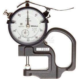 Mitutoyo 7301 Dial Thickness Gage, Flat Anvil, Standard Type, 0-10mm Range, 0.01mm Graduation, +/-15 micrometer Accuracy
