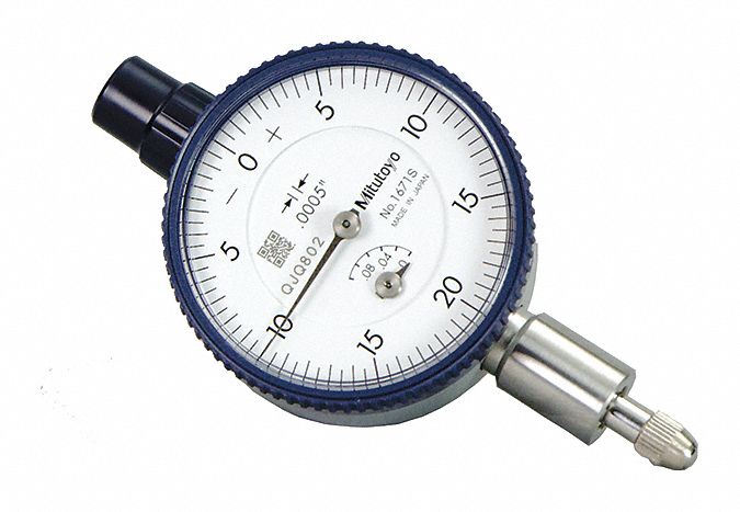 - Standard dial indicator with a 0.375" diameter stem, a #4-48 UNF contact point thread mount, and choice of white or black face, for measuring surface variations in fractional inches