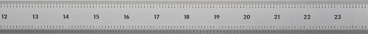 Mitutoyo 182-162, Steel Rule, 24" (16R), (1/32, 1/64, 1/50, 1/100"), 3/64" Thick X 1-3/16" Wide, Satin Chrome Finish Tempered Stainless Steel