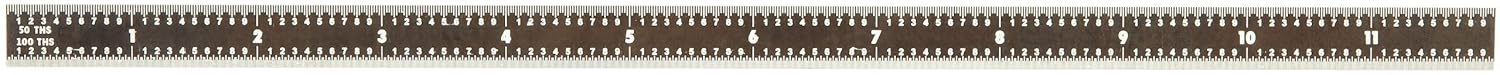 Mitutoyo 182-219, Steel Rule, 12" (16R), (1/32, 1/64, 1/50, 1/100"), 1/64" Thick X 1/2" Wide, Black Chrome Finish Tempered Stainless Steel