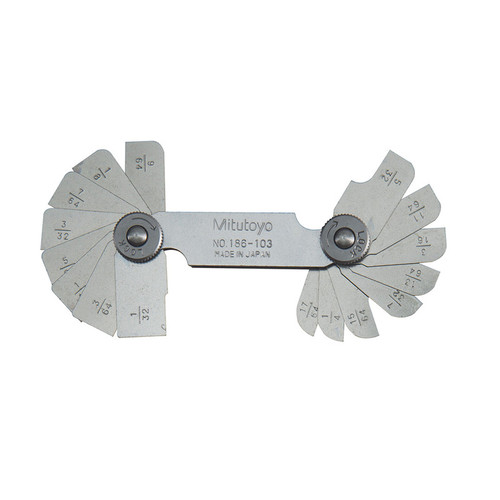 Mitutoyo 186-103, Radius Gage Set, 16 Pairs of Leaves, 1/32 to 17/64 by 64ths