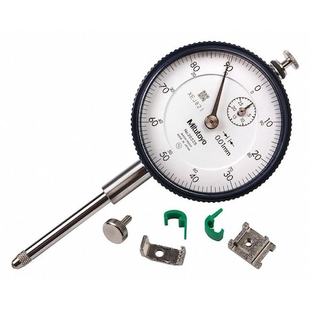 Mitutoyo 2052S Dial Indicator, M2.5X0.45 Thread, 8mm Stem Dia., Lug Back, White Dial, 0-100 Reading, 57mm Dial Dia., 0-30mm Range, 0.01mm Graduation, +/-0.025mm Accuracy
